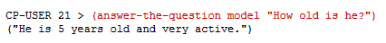 Notice how, for the last question, the system gives the complete sentence as reply although the best answer would be He is 5 years old.