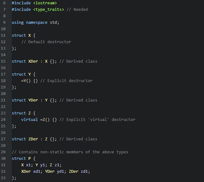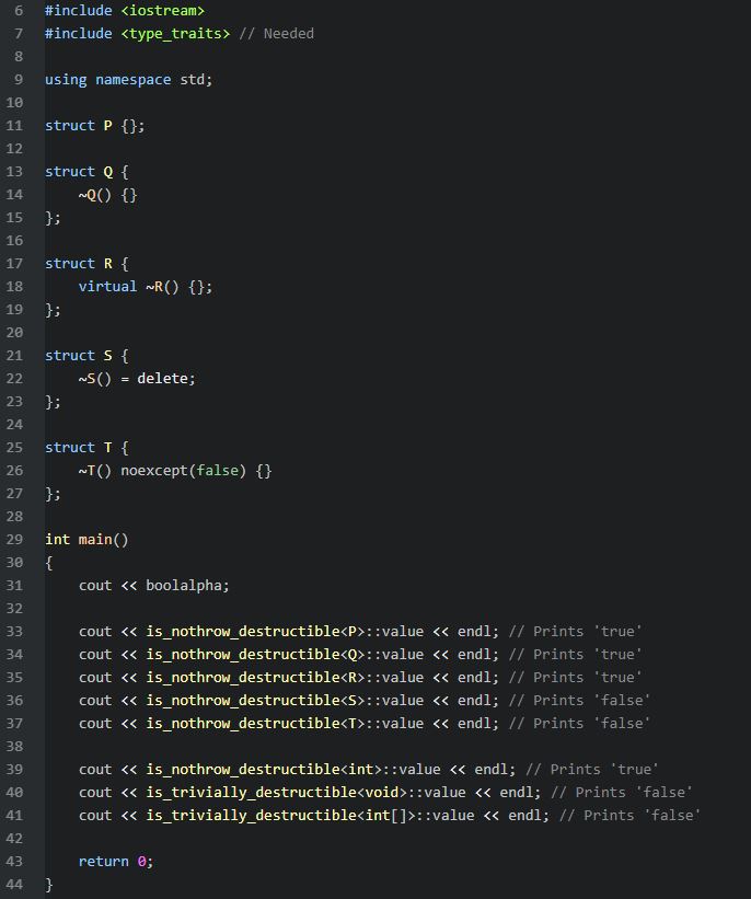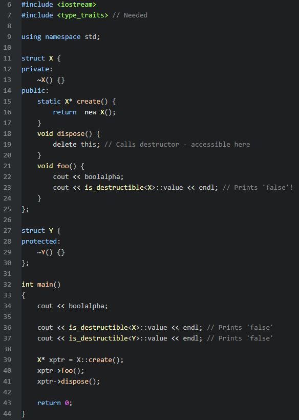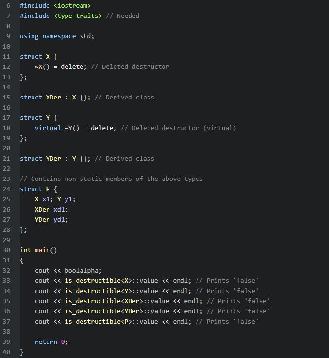 Note that we do not have to create objects of these types in order to check if they are destructible.
