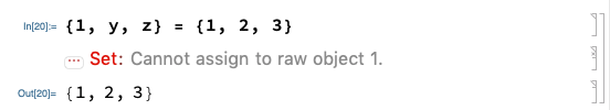 As the above examples show, the “=” operator in Elixir is more general than Mathematica’s assignment operator.