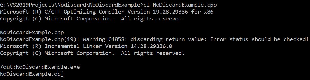 When a function is defined to return this enumeration, the compiler checks to see if the returned value is discarded. If it is, then the compiler is likely to generate a warning.