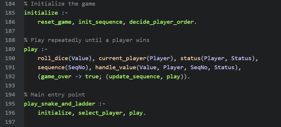 The logic to handle specific dice values when a player rolls the dice is implemented in these clauses:
